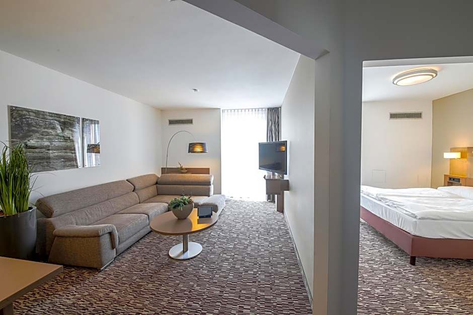 This suite features a flat-screen satellite TV, a seating area and an private bathroom.